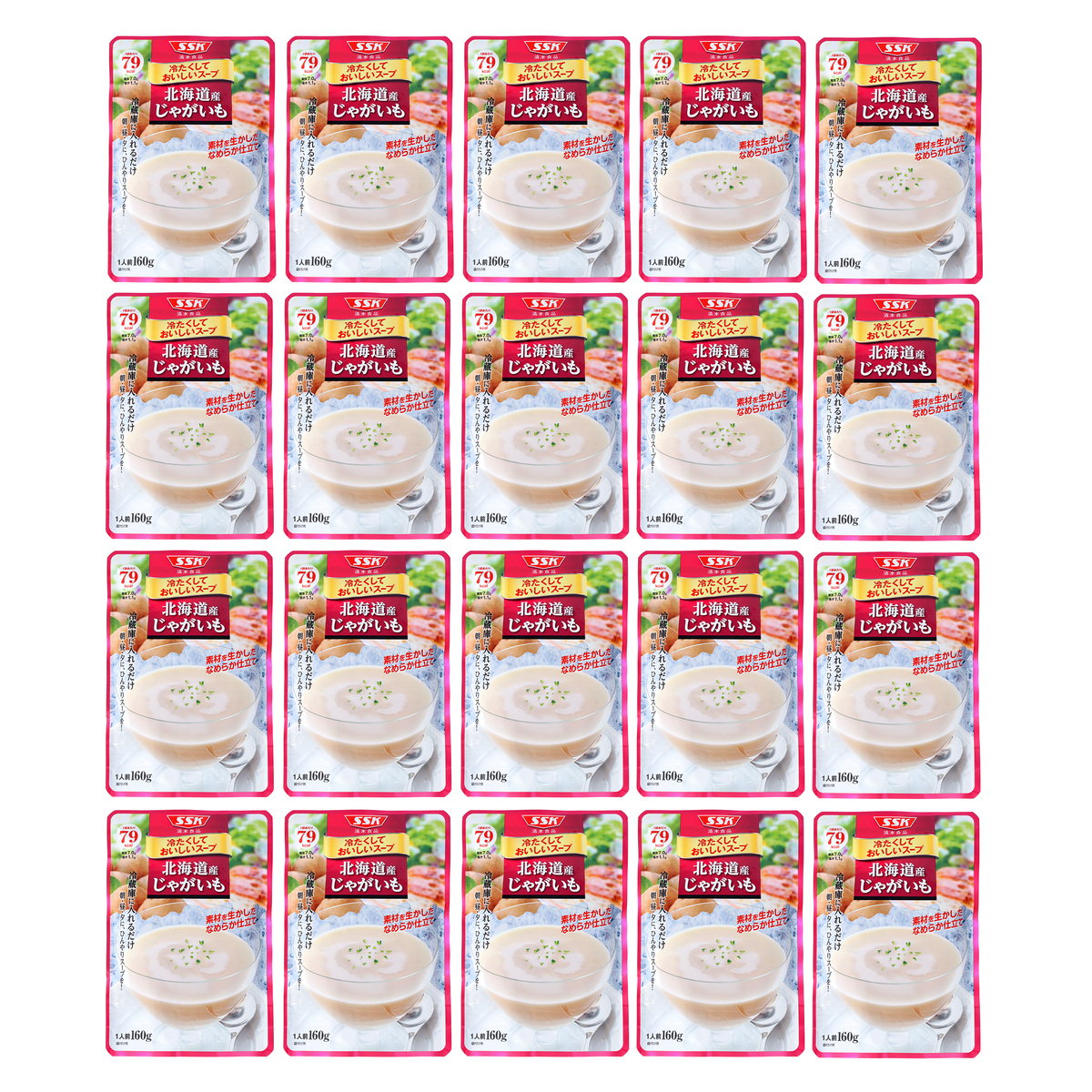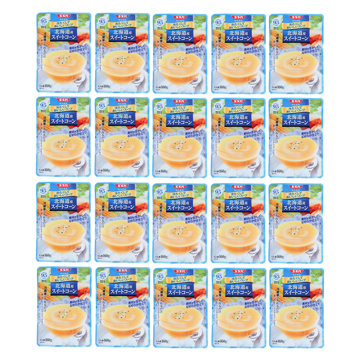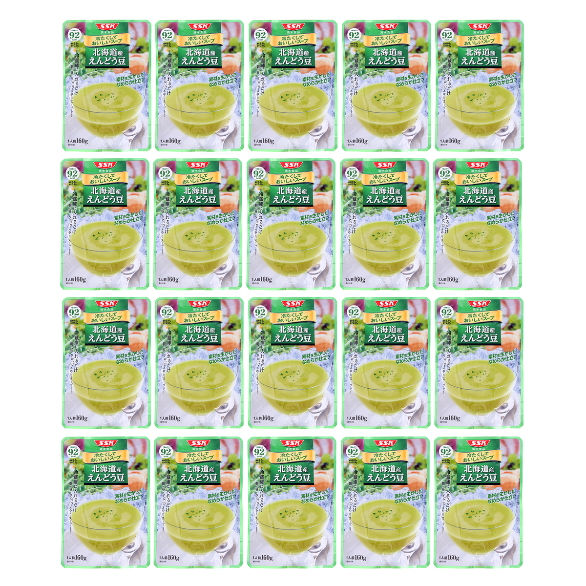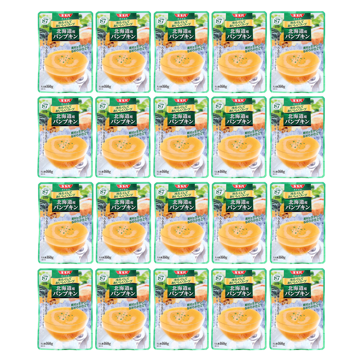 [アレルギー物質特定原材料8品目] 小麦、乳 [内容量] 160g×20袋 [賞味期限] 出荷時点で賞味期限まで以下の日数がある商品をお届けします スイートコーン、じゃがいも、えんどう豆:130日以上 パンプキン:160日以上 [保存方法] 開封前:直射日光を避け、常温で保存してください 開封後:開封後はすぐにお召し上がりください [お召し上がり方] ・袋のまま冷蔵庫で冷やし、中身をよく振ってから器にあけてお召し上がりください ・お好みにより牛乳を加えても、おいしく召し上がれます ※温めてもおいしくお召し上がりいただけます [注意事項] ※開封前に必ずよく振ってから開けてください ※袋のふちで手を切らないようにご注意ください ※冷蔵庫の冷気の吹き出し口付近など0℃以下になる場所での保管は、内容液が固まったり、分離したりする場合がありますので避けてください ※スープの中の黒い粒は香辛料ですので安心してお召し上がりください ※原料由来の成分が浮遊、沈殿したり、内容液が濁変したりすることがありますが品質には問題ありません [原料原産地] スイートコーン:スイートコーン(北海道) パンプキン:かぼちゃ(北海道) じゃがいも:じゃがいも(北海道) えんどう豆:グリーンピース(北海道) [原産国] 日本 [原材料] スイートコーン: スイートコーン(北海道)、濃縮乳、クリーム(乳成分を含む)、ソテーオニオン、砂糖、バター、野菜ペースト、チキンエキス、食塩、香辛料/増粘剤(加工デンプン)、乳化剤 パンプキン: かぼちゃ(北海道)、牛乳、クリーム、ソテーオニオン、米粉、砂糖、チキンエキス、野菜ペースト、食塩、酵母エキス、香辛料/pH調整剤 じゃがいも: じゃがいも(北海道)、油脂加工食品(植物性油脂、脱脂粉乳)、ソテーオニオン、チキンエキス調味料、砂糖、西洋ネギ粉末、食塩、酵母エキス、香辛料/増粘剤(加工デンプン)、カゼインNa、乳化剤、pH調整剤、(一部に乳成分・小麦・大豆・鶏肉を含む) えんどう豆: グリーンピース(北海道)、油脂加工食品(植物性油脂、乳たん白、その他)、ソテーオニオン、砂糖、チキンエキス調味料、小麦粉、食塩、酵母エキス、香辛料/乳化剤、カゼインNa、pH調整剤、クチナシ色素、(一部に乳成分・小麦・大豆・鶏肉を含む)