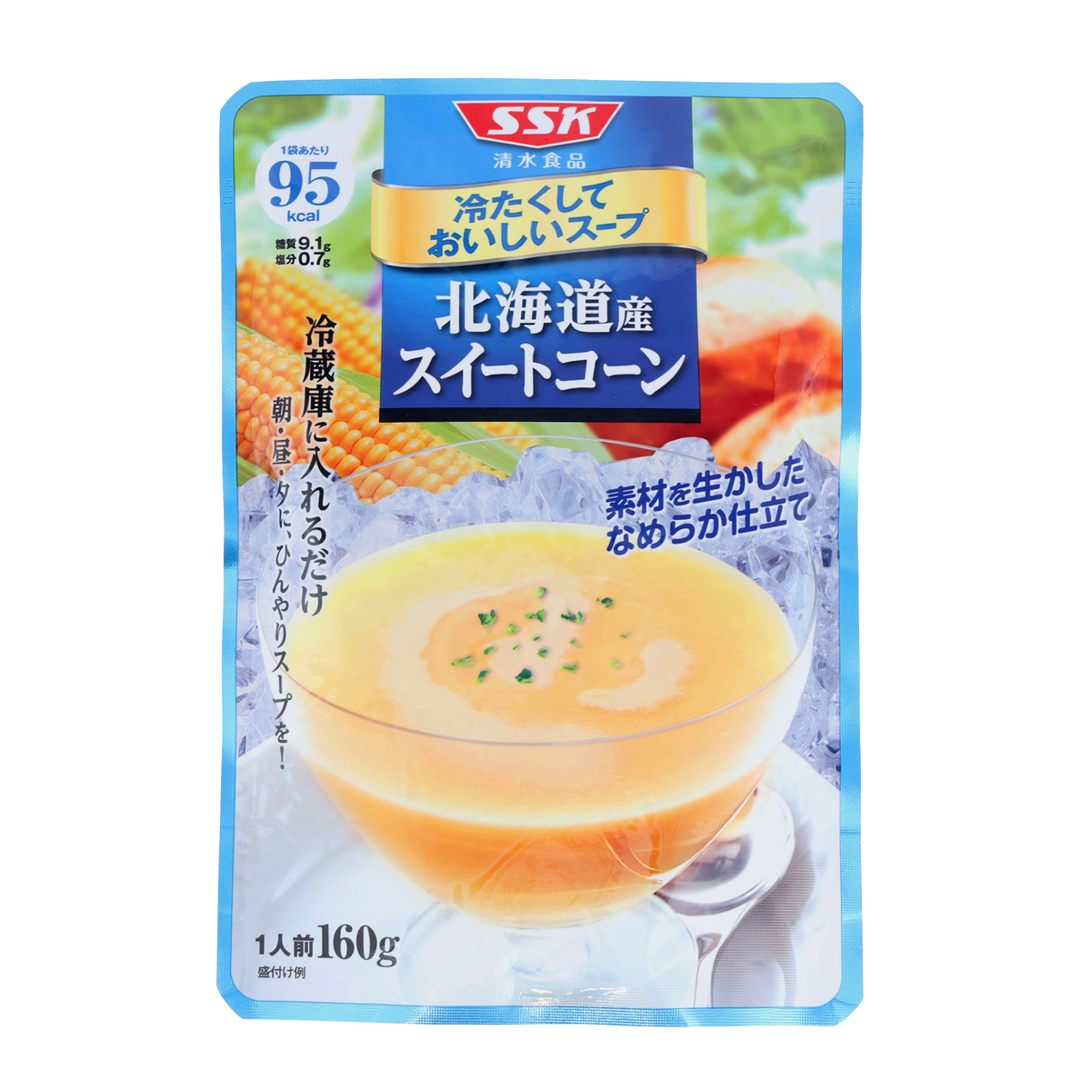 原料のスーパースイートコーン、パンプキン、じゃがいも、えんどう豆(原材料名:グリーンピース)は北海道産のものを使用。豊かな風味と甘味を活かし、なめらかに仕上げています