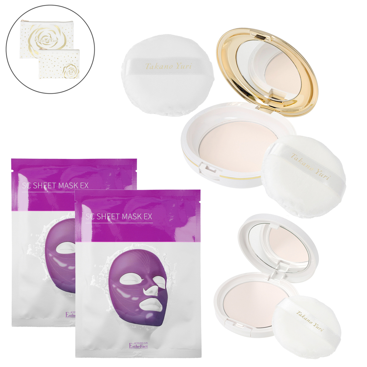 [セット内容] ・たかの友梨 エステファクト エッセンスパウダーEX N 23g(パフ2個付き) ・たかの友梨 エステファクト エッセンスパウダーEX N 10g(パフ1個付き) ・オリジナルポーチ ※プレゼント <オリジナルポーチ> [サイズ] 大:幅18×高さ12cm 小:幅13×高さ9cm [使用方法] パフに適量をとり、お顔全体に軽くおさえるようになじませます [注意事項] ※お肌に異常が生じていないかよく注意して使用してください。化粧品がお肌に合わないとき、すなわち次のような場合は、使用を中止してください。そのまま化粧品類の使用を続けますと、症状を悪化させることがありますので、皮ふ科専門医等にご相談されることをおすすめします (1)使用中、赤み、はれ、かゆみ、しげき、色抜け(白斑等)や黒ずみ等の異常があらわれた場合 (2)使用したお肌に、直射日光があたって上記のような異常があらわれた場合 ※傷やはれもの、しっしん等、異常のある部位にはお使いにならないでください ※目に入ったときは、直ちに洗い流してください ※使用後は必ずしっかりふたをしめてください ※乳幼児の手の届かないところに保管してください ※極端に高温又は低温の場所、直射日光のあたる場所には保管しないでください ※天然由来の成分を使用しているため色調、香調に変化がみられる場合がありますが、品質に問題ありません 【日本製(ポーチは中国製)】 [セット内容] ・たかの友梨 エステファクト エッセンスパウダーEX N 23g(パフ2個付き) ・たかの友梨 エステファクト エッセンスパウダーEX N 10g(パフ1個付き) ・オリジナルポーチ ※プレゼント ・たかの友梨エステファクト SCシートマスクEX2枚(プレゼント) [成分] エステファクト エッセンスパウダーEX N:タルク、マイカ、メタクリル酸メチルクロスポリマー、ナイロン-12、ステアリン酸Mg、イソステアリン酸ポリグリセリル-2、酸化チタン、アルミナ、エチルヘキサン酸セチル、炭酸Ca、アルガニアスピノサカルス培養エキス、ロドデンドロンフェルギネウム葉培養細胞エキス、リョクトウ成長点細胞培養エキス、ウコンカルス溶解質、アセチルテトラペプチド-11、オリゴペプチド-24、オリゴペプチド-6、トコトリエノール、トコフェロール、 パルミチン酸レチノール、3-ラウリルグリセリルアスコルビン酸、トリスヘキシルデカン酸ピリドキシン、テトラヘキシルデカン酸アスコルビル、水添レシチン、レシチン、ブドウ果実エキス、セラミド1、セラミド2、セラミド3、セラミド5、セラミド6II、リンゴ果実培養細胞エキス、ナイアシンアミド、バクチオール、ツボクサ葉エキス、カミツレ花エキス、ビルベリー葉エキス、スイゼンジノリ多糖体、アロエベラ葉エキス、アルテロモナス発酵エキス、オウゴン根エキス、 アルニカ花エキス、キュウリ果実エキス、セイヨウキズタ葉/茎エキス、セイヨウニワトコ花エキス、ゼニアオイ花エキス、パリエタリアエキス、コーンスターチ、セルロース、合成フルオロフロゴパイト、(ジメチコン/ビニルジメチコン)クロスポリマー、(HDI/トリメチロールヘキシルラクトン)クロスポリマー、ニオイテンジクアオイ油、 パルマローザ油、グレープフルーツ果皮油、ダマスクバラ花油、ラベンダー油、フィトステロールズ、コレステロール(羊毛)、水添ヤシ油、ホホバ種子油、ラウロイルグルタミン酸ジ(フィトステリル/オクチルドデシル)、コメヌカ油、コーン油、プロパンジオール、ラウリン酸ポリグリセリル-10、イソマルト、マンニトール、エチルヘキシルグリセリン、1,2−ヘキサンジオール、BG、グリセリン、水、酸化鉄、含水シリカ、水酸化Al、ハイドロゲンジメチコン、ステアリン酸、クエン酸Na、クエン酸、乳酸