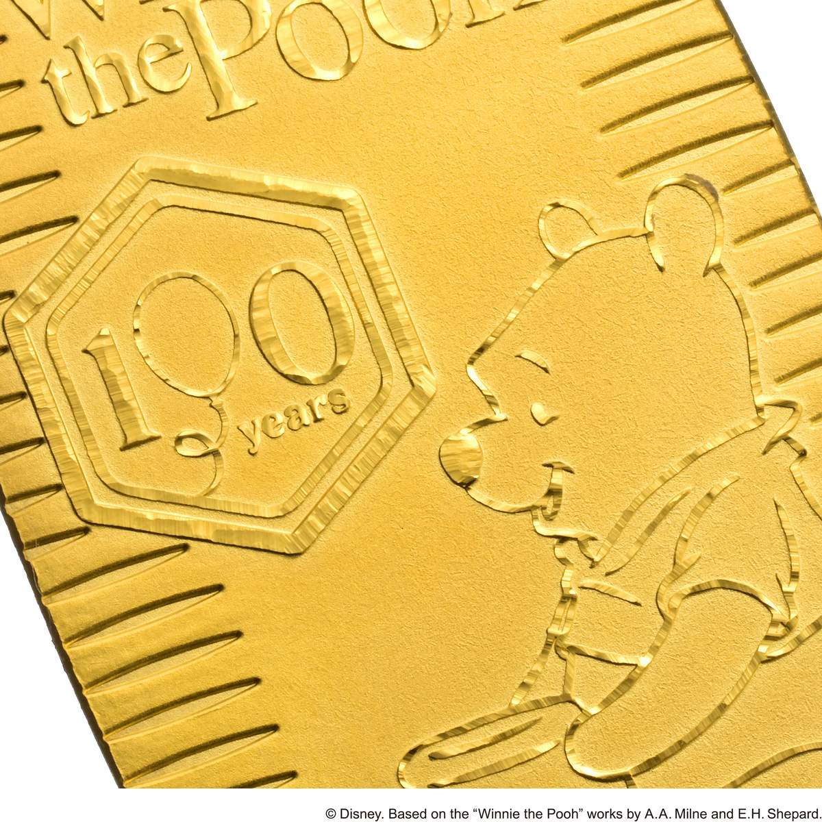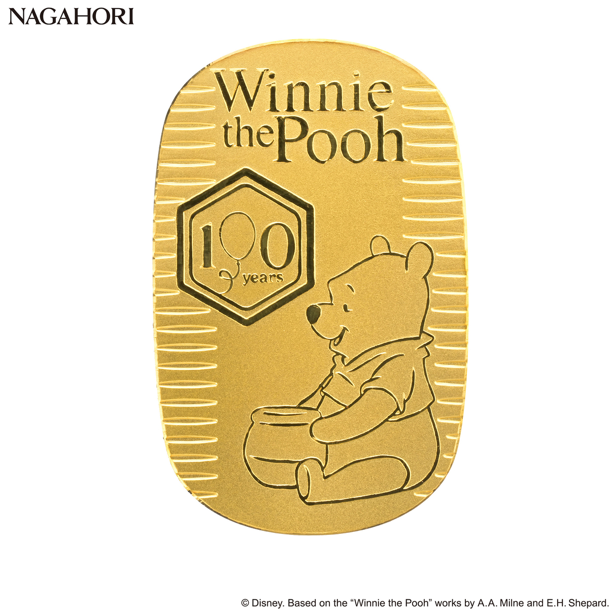 ディズニーキャラクター「くまのプーさん」原作デビュー100周年を記念した純金小判15g。収納ケース付きでお届けします