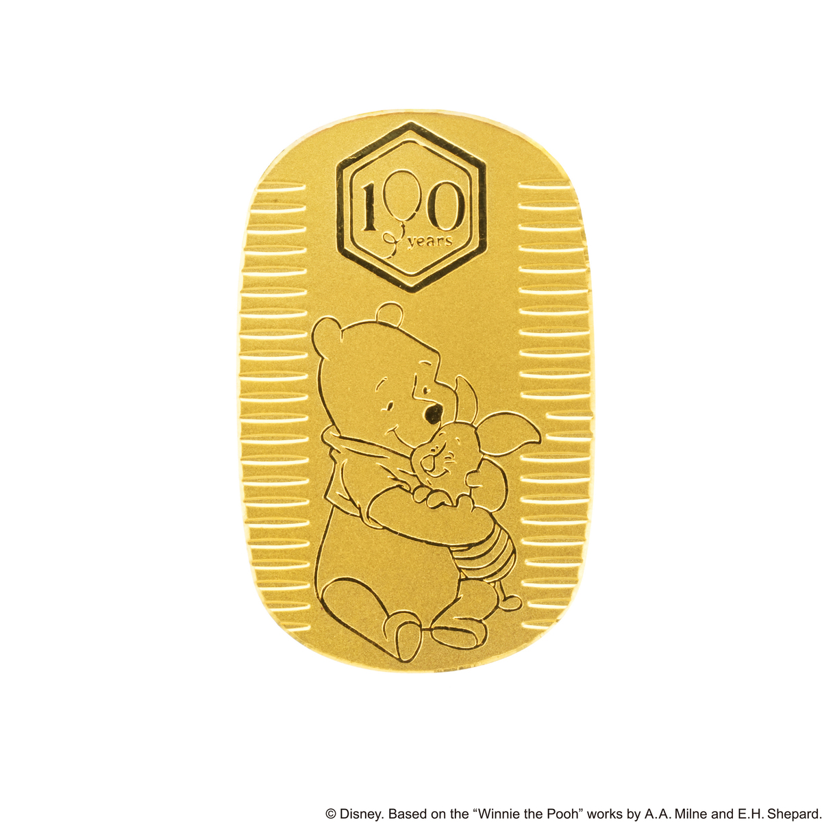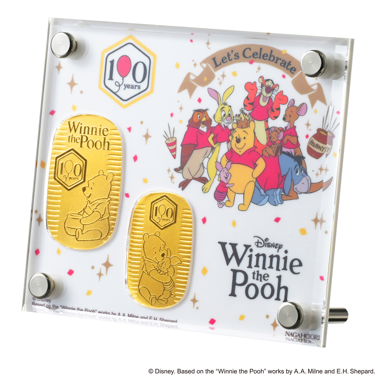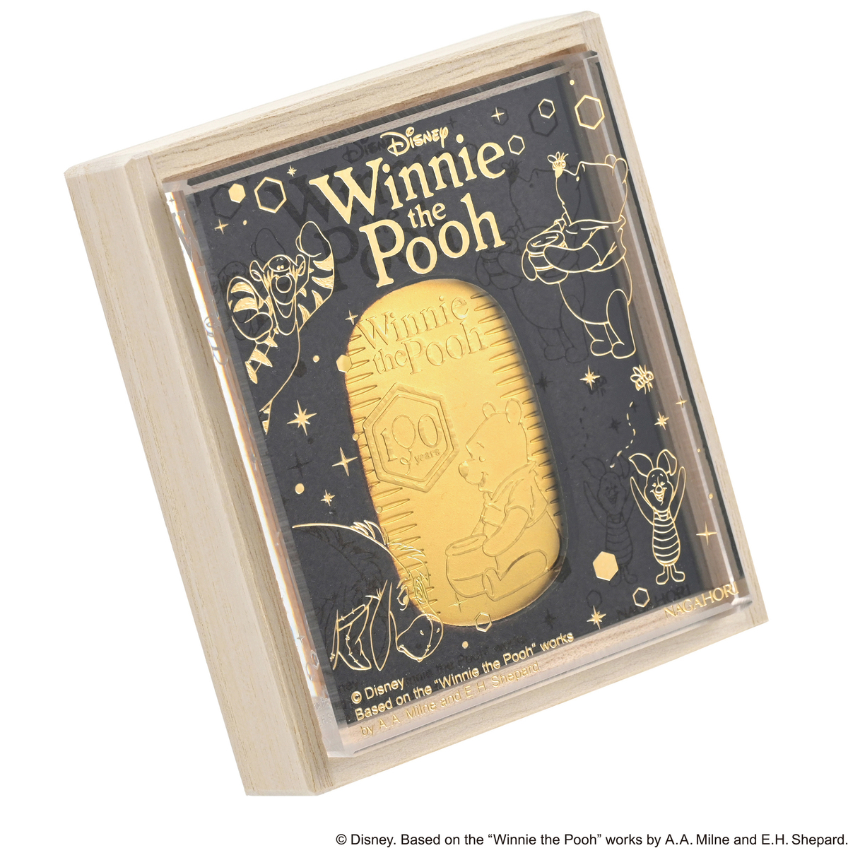 ディズニーキャラクター「くまのプーさん」原作デビュー100周年を記念した純金小判。10g&15gのセット+収納ケース2点、さらにセット用ディスプレイケース付きでお届けします